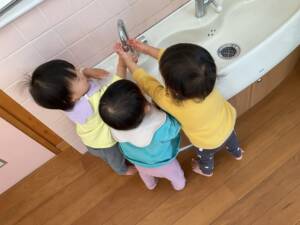 毎日を楽しく過ごしています💕 0歳児 2026/02/02 「きらきらシャボン玉🫧」 舞い上がるシャボン玉を見つめて楽しい時間を過ごしました😊 「手洗いできたよ💧」 高月齢児の手洗いの様子を見て、蛇口に手を伸ばし手洗いをする姿が微笑ましかったです🥰