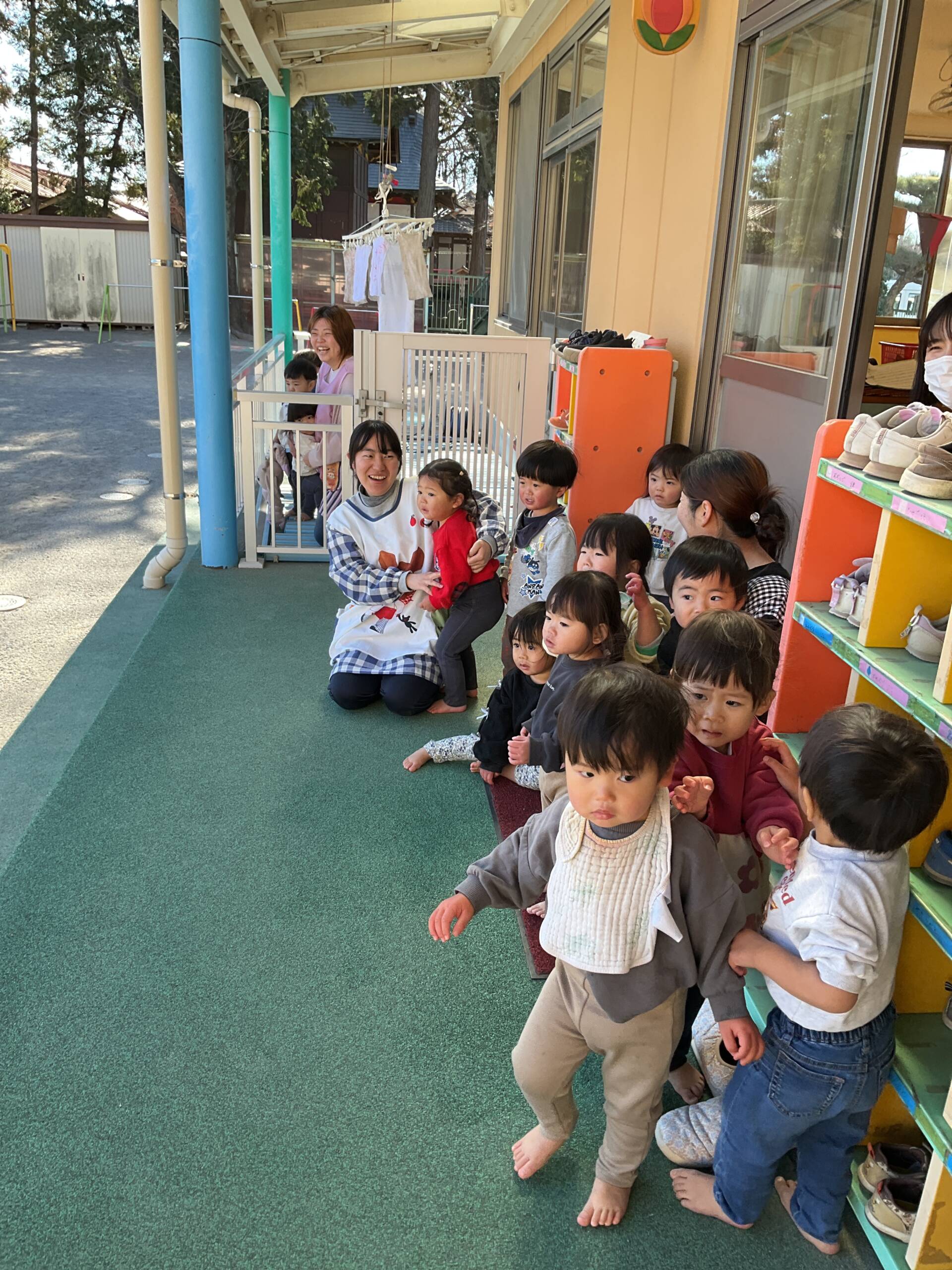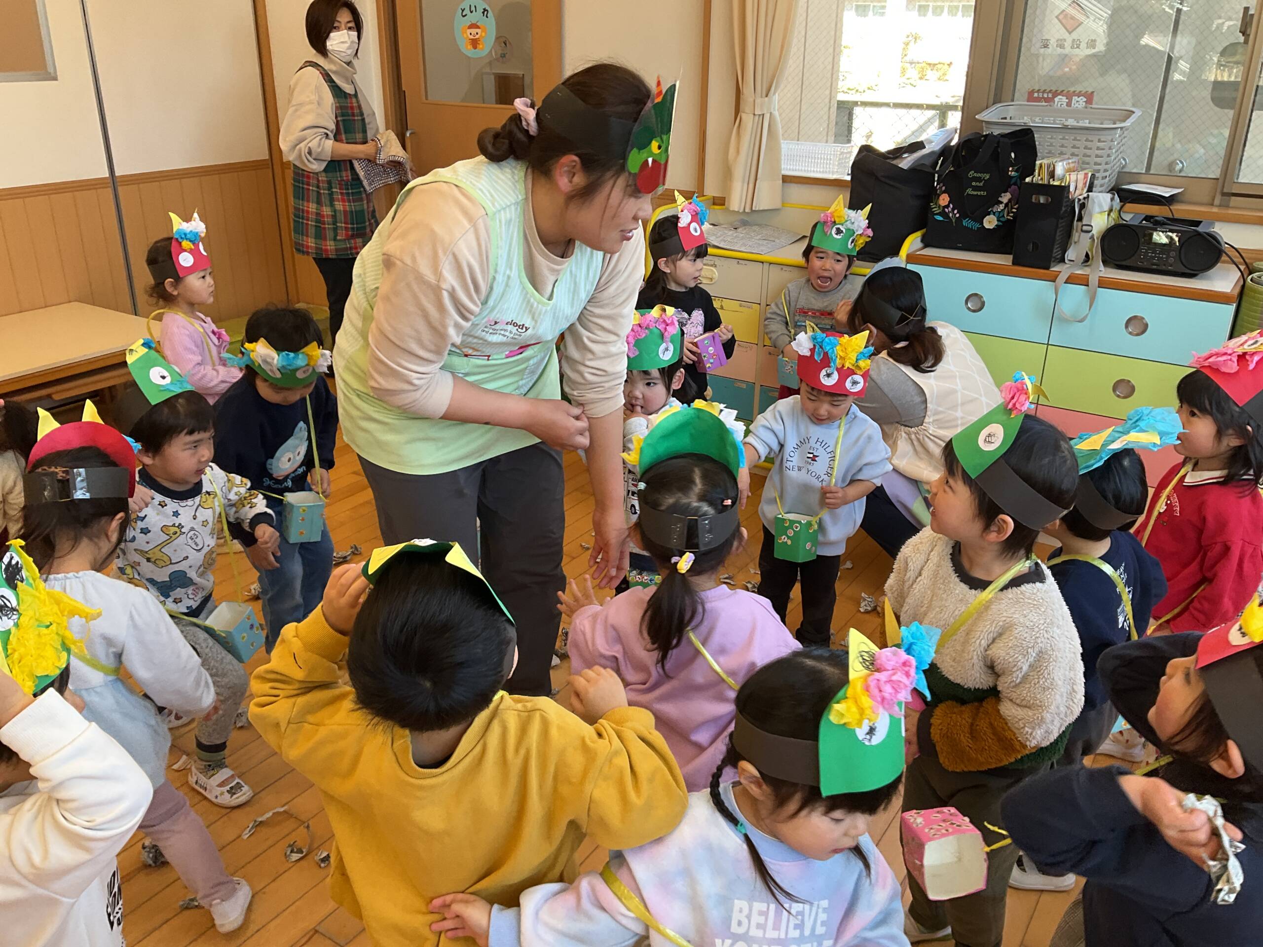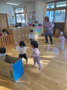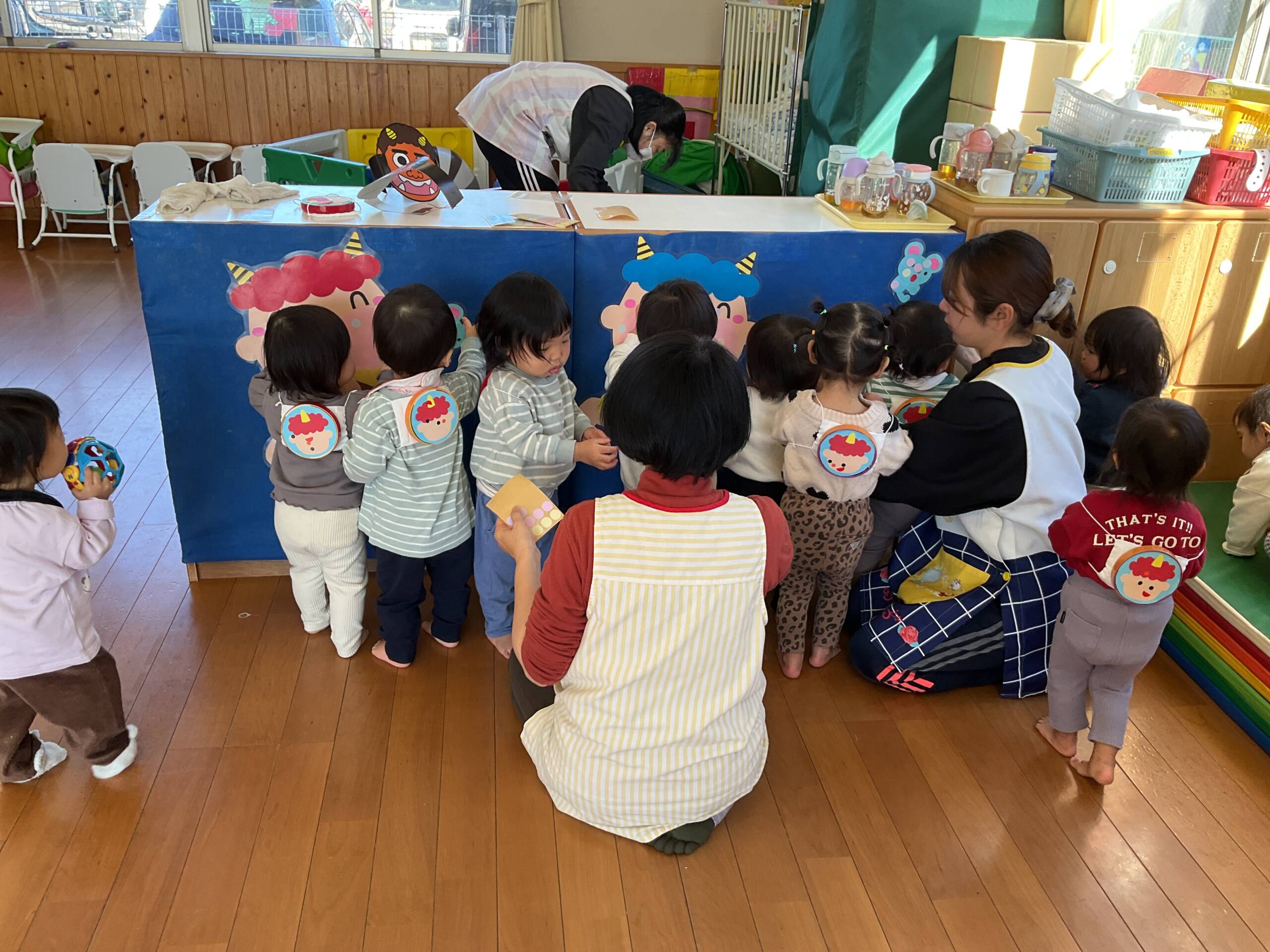 節分集会がありました👹 乳児部 2026/03/03 節分集会では「鬼は外!福は内!」と元気な声がそれぞれの部屋に響きました😊 最初はドキドキしていた子どもたちでしたが、友だちや先生と一緒に豆まきを楽しむ姿が見られました♪ 自分の中にある‘泣き虫鬼’や‘怒りんぼ鬼’を追い出そうと、一生懸命に豆を投げる姿がかわいらしかったです!